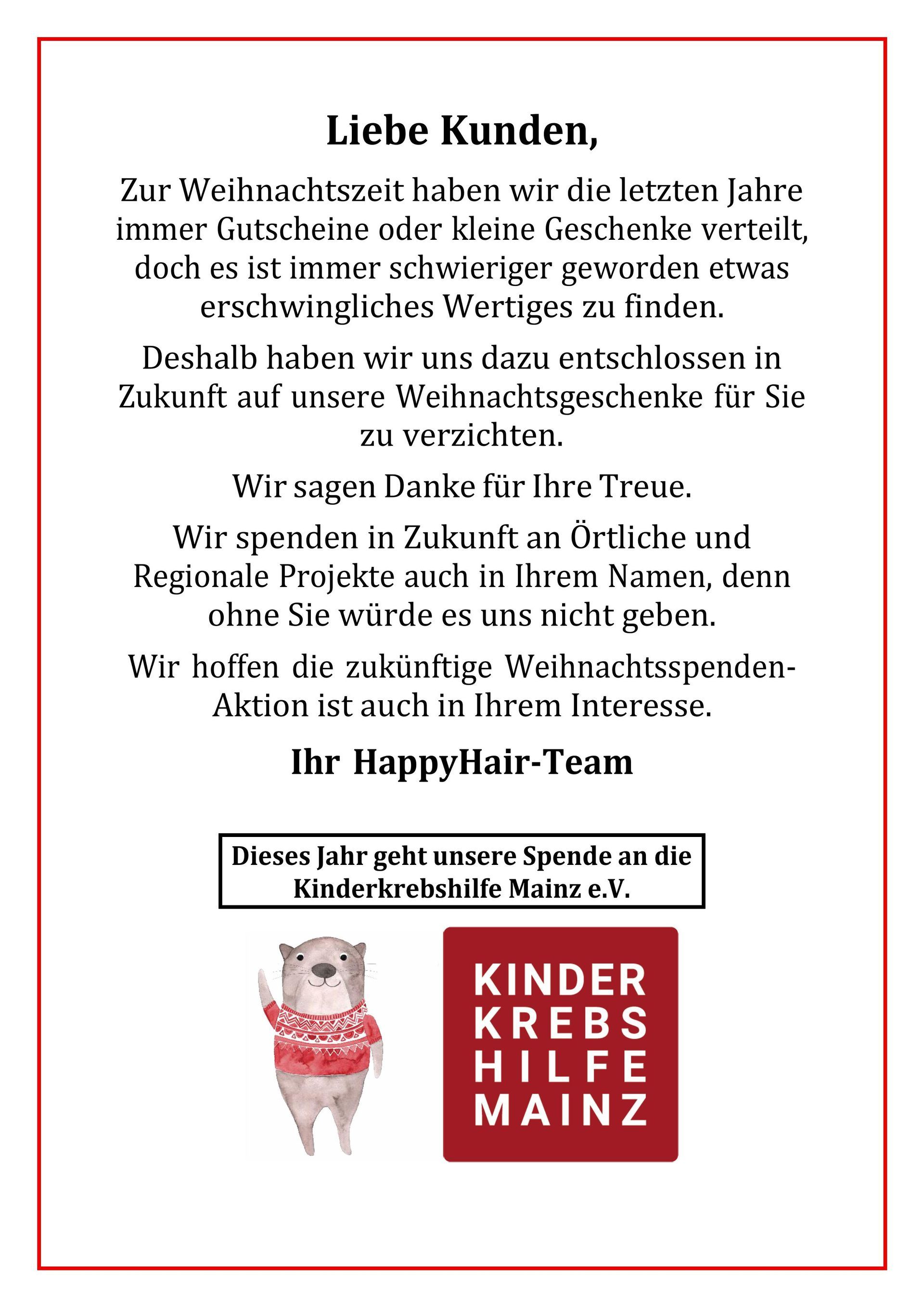 Das Haarstudio "HAPPYHAIR" ist mit einer Klimaanlage ausgestattet, um auch im Sommer Euch den Aufenthalt bei uns so angenehm wie möglich zu machen.